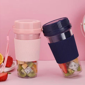 خلاط صغير محمول اوتوماتيكي قابل لاعادة الشحن بمنفذ USB مع شفرات خلاط عصير (350 مل، بينك)